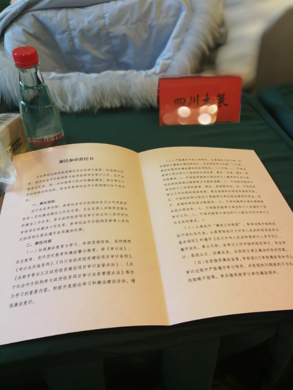 2017年12月27日成都市青白江審計局舉辦了2018-2020年社會中介機構審計業務培訓會。此次會議對政府投資項目的評審、前期方案、招投標程序、完成后的決算審計等內容做了專題培訓,并重點強調了社會中介機構廉潔參審。我公司受邀參與此次會議,積極配合工作,仔細閱讀了廉政參審責任書,認真開展審計工作。
