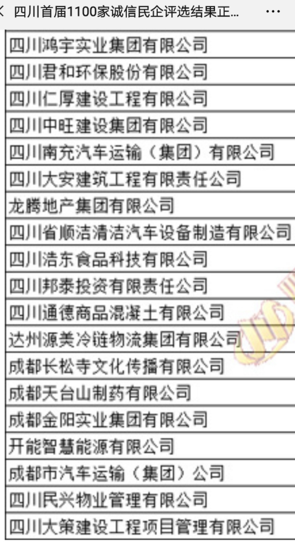 我公司成功入選“四川省誠信民營企業”