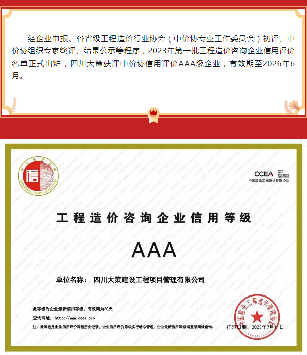 熱烈祝賀大策獲評中價協信用評價AAA級企業