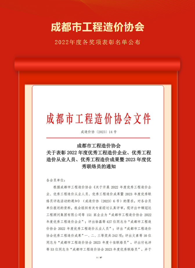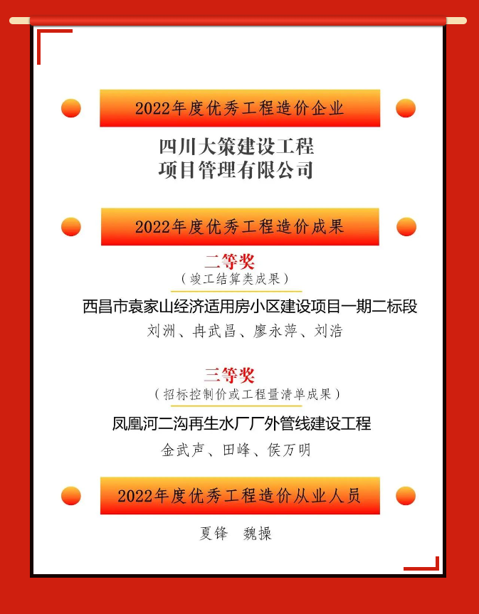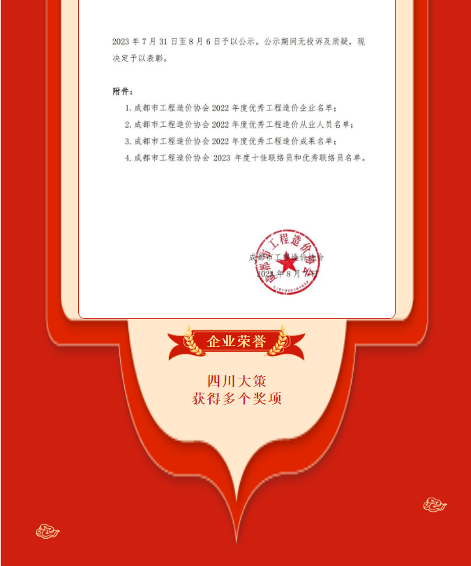 企業榮譽 |四川大策榮獲成都市工程造價協會多個獎項