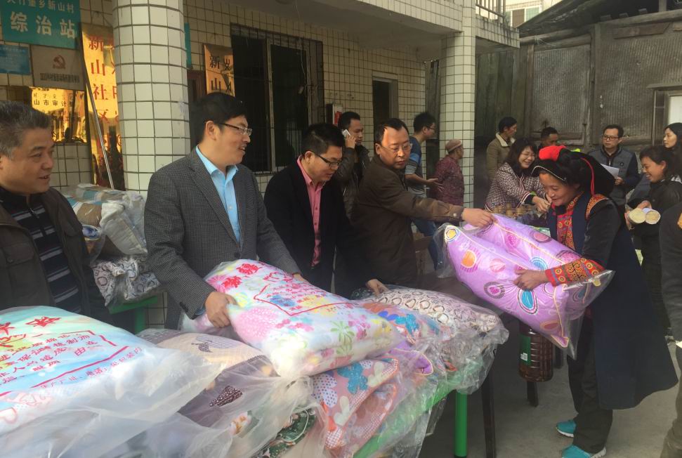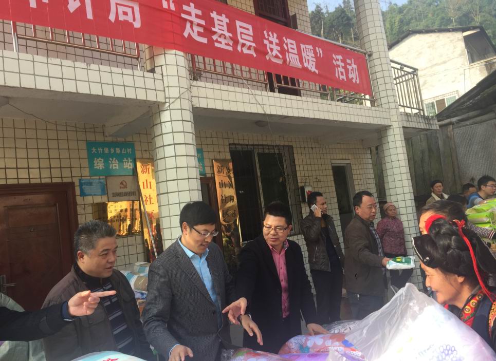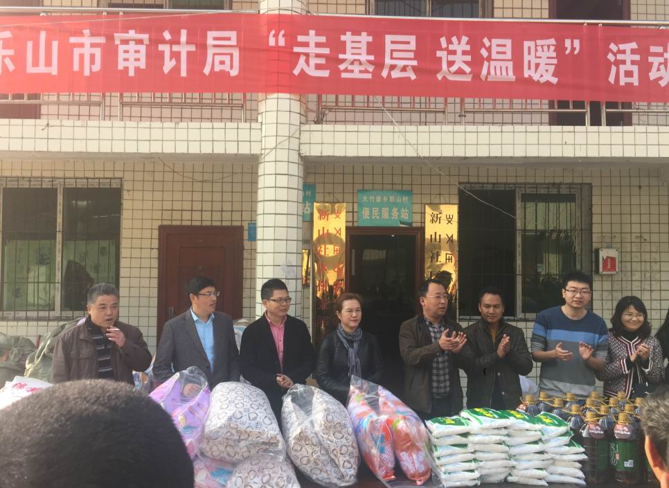 樂山市審計局與我公司攜手來到馬邊彝族自治州大竹堡鄉(xiāng)新山村,給當(dāng)?shù)刎毨艏傲羰貎和蛠碛镔Y與學(xué)習(xí)用品。