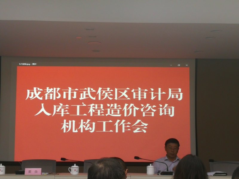 9月7日成都市武侯區(qū)審計局召開“成都市武侯區(qū)審計局入庫工程造價咨詢機(jī)構(gòu)工作會”。邀請本市優(yōu)秀造價企業(yè)的主要負(fù)責(zé)人參與,我公司張總受邀參與此次會議。
